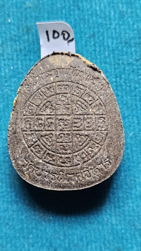 พระปิดตาหลังยันต์ดวงเล็ก เนื้อ2 สี หน้าเกสรหลังใบลาน(มีคล้ายคราบน้ำมนต์) ครับ(100) |