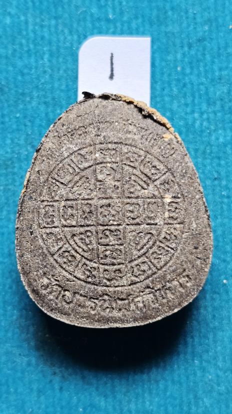 พระปิดตาหลังยันต์ดวงเล็ก เนื้อ2 สี หน้าเกสรหลังใบลาน(มีคล้ายคราบน้ำมนต์) ครับ(1) |