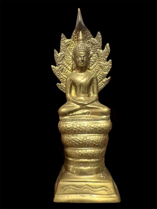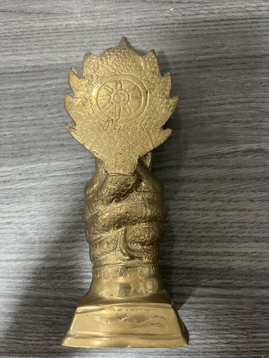 พระนาคปรก ทองเหลือง ก้นดินไทยผสมปูน ฐาน 2 นิ้วครึ่ง สูง 8 นิ้ว |