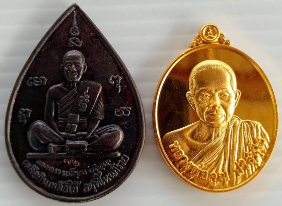 เหรียญหลวงพ่อคูณ ปริสุทโธ รุ่น เหลือกินเหลือใช้ อยู่ที่ไหนก็รวย เนื้อทองแดง แซยิด ปี2537มีรอยจาร) และ เหรียญหลวงพ่อคูณ รุ่นมหาบารมี 70 พรรษา แห่งการอุปสมบท รวมรับจำนวน 2 เหรียญ |