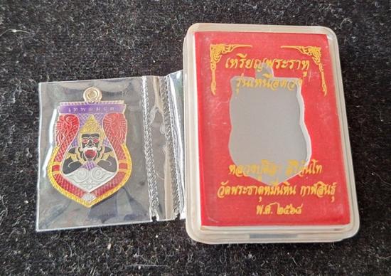 เหรียญพระราหูอมจันทร์ รุ่นเหนือดวง เนื้ออัลปาก้าลงยา ตอกเลข+ตอกโค๊ต พร้อมกล่อง