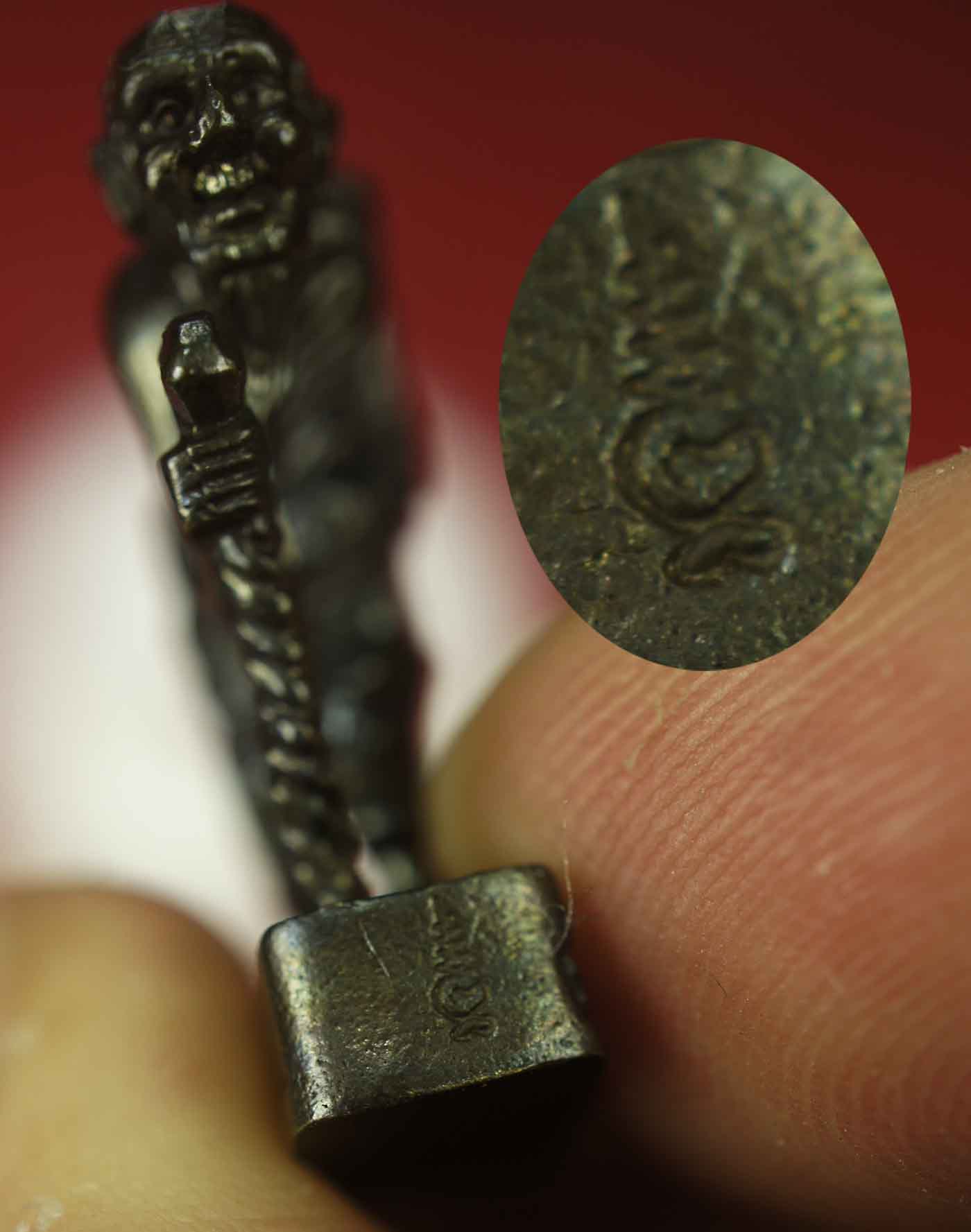 C.ชูชกย่ามบิน รุ่น 2 ปี 2549 เนื้อทองแดงลมดำ ด้านหน้า ตอกโค๊ต ด้านหลังมีจาร หลวงพ่อสาคร วัดหนองกรับ ระยอง ( ขนาดความสูง 1 นิ้ว ) แด่นทางโชคลาภ เมตตาค้าขาย คงกระพัน |