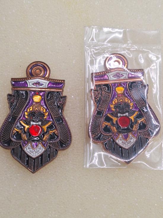 ((วัดใจ) 2 องค์เหรียญพระราหูอมจันทร์ รุ่นราชาโชค วัดศีรษะทอง เนื้อทองแดงลงยาม่วง |