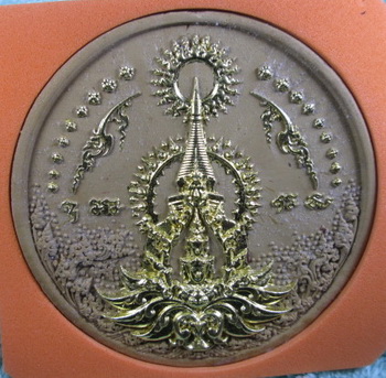 เนื้อผงพุทธคุณน้ำตาล ปัดทอง ขนาด 5.5 cm.