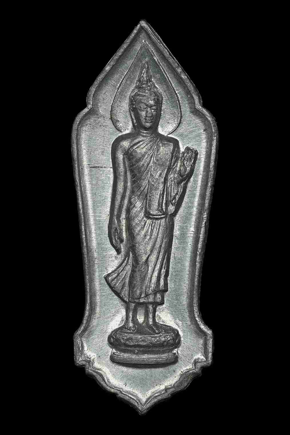 (((วัดใจ)))พระลีลา 25 พุทธศตวรรษ ปี พ.ศ.2500 เนื้อชินตะกั่ว บล็อคสังฆาฏิจุด