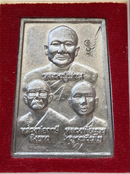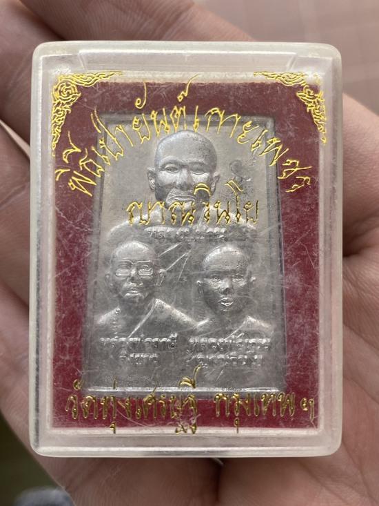 เหรียญ 3 คณาจารย์หลังยันต์เกราะเพชร พิธีเป่ายันต์เกราะเพชร หลวงพ่อเณร วัดทุ่งเศรษฐี เนื้อปรอท |
