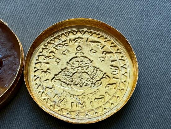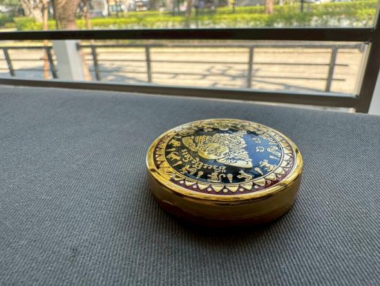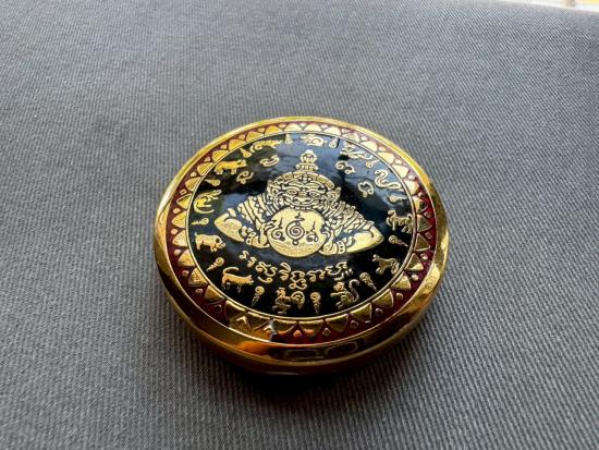 เคาะเดียวไวไว ตลับสีผึ้งพระราหู มหานิยมอุดมโชค จตุคามรามเทพ รุ่น มงคลจักรวาล ปี2549 พิมพ์ใหญ่ ขนาด5.5ซม ลงยาดำ ลงเบญจรงค์น้ำทอง สีผึ้งด้านในเดิมๆ |