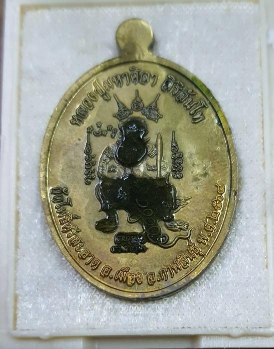 เหรียญเมตตา หลังหนุมาน ทาน้ำมันว่านโพรง เนื้อทองฝาบาตร No.281 กล่องเดิม |