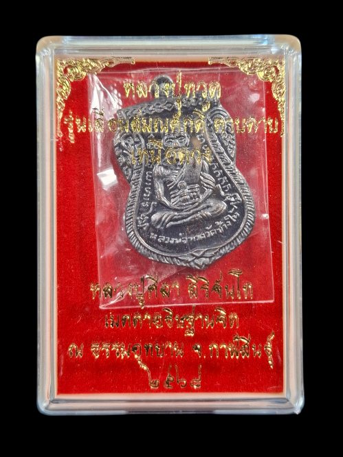 เหรียญเสมาหลวงปู่ทวด รุ่น เลื่อนสมณศักดิ์ คาบดาบ เหนือดวง ปี 2568 หลวงปู่ศิลา อธิษฐานจิต เนื้อทองแดงรมดำ |