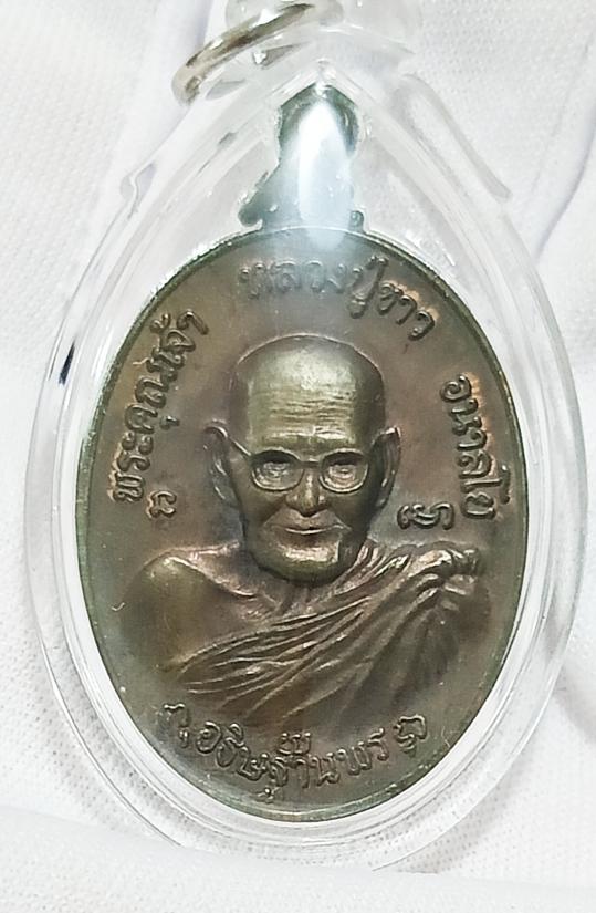 เหรียญหลวงปู่ขาว วัดถ้ำกลองเพล รุ่น ทรัพย์สินฯ พิมพ์ใหญ่ เนื้อนวะโลหะ ปี2521 |