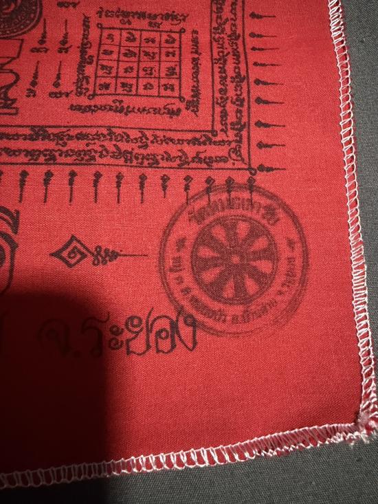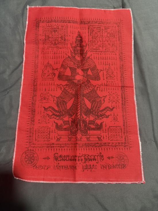 ผ้ายันต์สีแดงท้าวเวสสุวรรณธนบดี หลวงพ่อสาคร มนุญโญ วัดหนองกรับ สวยเดิมเก็บดี ขนาดประมาณ 12 x 18 นิ้ว |