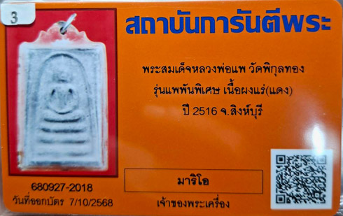 พระสมเด็จแพพันพิเศษ หลวงพ่อแพ วัดพิกุลทอง ปี 2516 เนื้อผงแร่