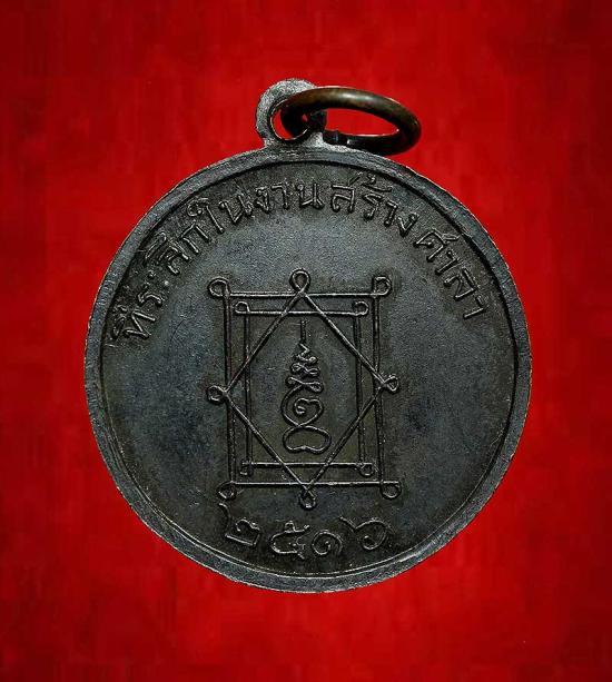 ตามประวัติการจัดสร้าง สร้างปี 2516 ในงานที่ระลึกสร้างศาลาเนื้อทองแดงรมดำ เกจิที่มาร่วมพิธีพุทธาภิเษกได้แก่ หลวงพ่อแพ วัดพิกุลทอง หลวงปู่หน่าย วัดบ้านแจ้ง หลวงพ่อแช่ม วัดป่าโมก หลวงปู่โต๊ะ วัดประดู่ฉิมพลี ฯลฯ
