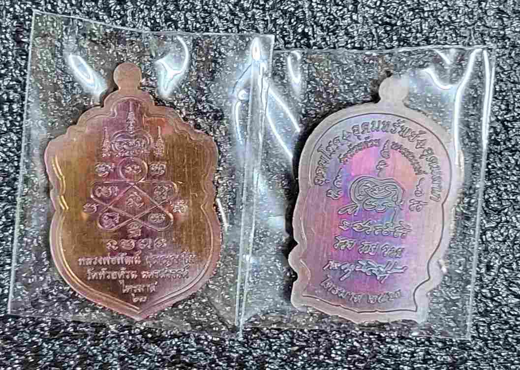 เคาะเดียวแดง ส่งคืนพื้นที่ เหรียญหลวงพ่อพัฒน์ รุ่นไตรมาส 63 พิมพ์เสมากลแก้ว เนื้อทองแดงผิวรุ้ง หน้ากากฝาบาตร สภาพเดิม รวม 2 เหรียญครับ |