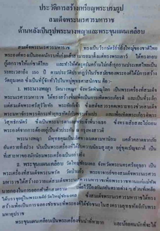 เหรียญ สมเด็จพระนเรศวร หลังพระนางพญา หลวงปู่ดุลย์ อตุโล ปลุกเสก พ.ศ.2524 เหรียญรุ่นนี้จัดสร้างโดยนายพิศาล มูลศาสตรสาทร อดีตปลัดกระทรวงมหาดไทยเป็นประธาน วัตถุประสงค์เพื่อ เป็นการเทิดพระเกียรติ แด่องค์สมเด็จพระนเรศวรและเพื่อแจกให้แก่ข้าราชการ ตำรวจ ทหาร อาสาสมัคร รวมทั้งประชาชนโดยทั่วไปเพื่อให้ปลอดภัยจากภยันตรายทั้งปวง