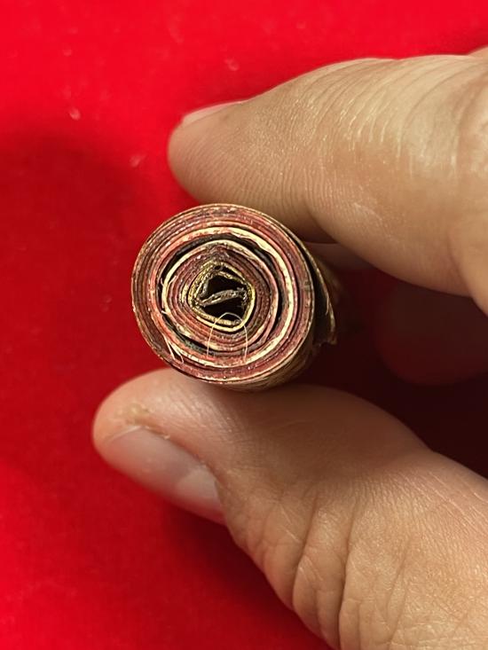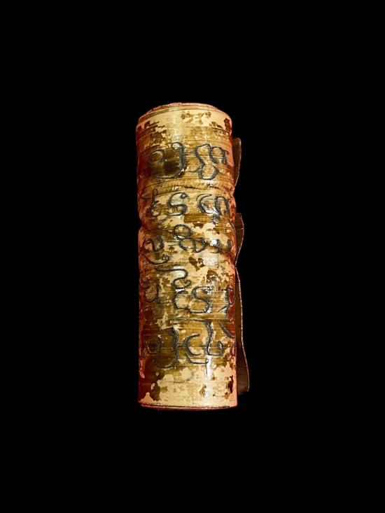 ตะกรุดใบลานเก่า มีจารอักขระไม่ทราบที่ครับ |