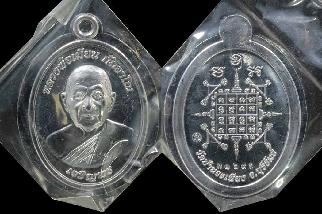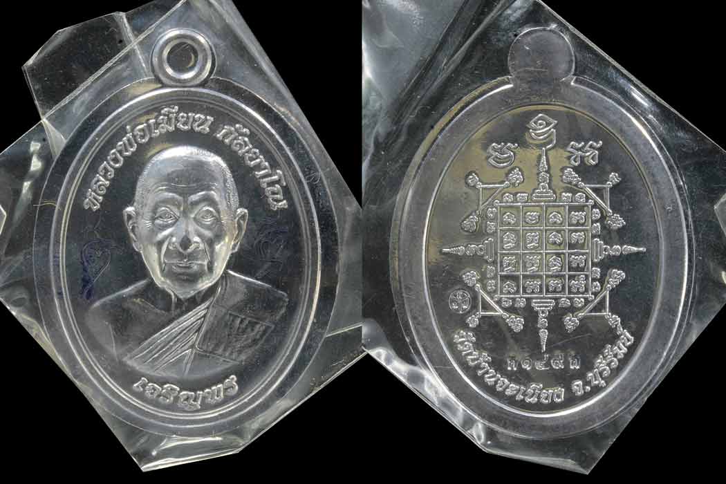 วัดใจ 3 เหรียญ เหรียญเจริญพรล่าง หลวงพ่อเมียน วัดบ้านจะเนียง เนื้อตะกั่วไม่ตัดปีก มีเลข มีโค๊ต พร้อมกล่อง |