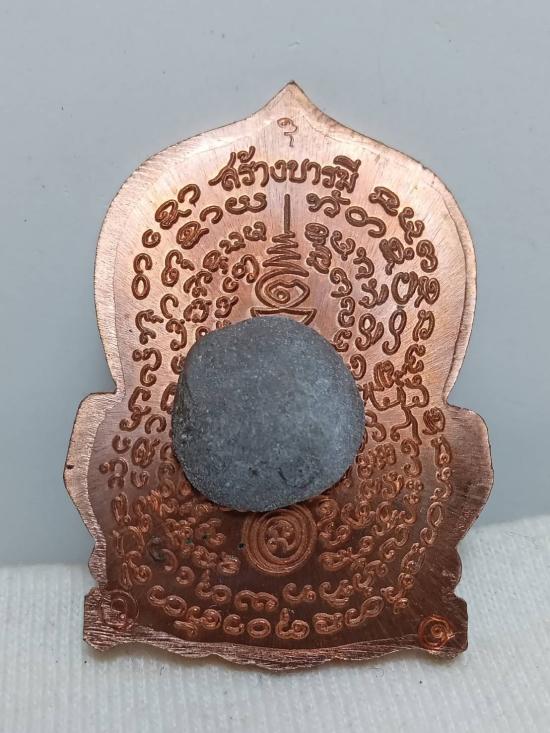 รายละเอียดพระ : เนื้อทองแดง ด้านหลังอุดมวลสาร พร้อมกล่องเดิม |