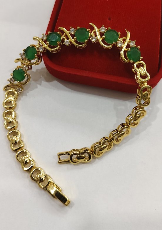 เทขาดทุน+ +เทปีใหม่++กำไลข้อมือมรกตยาว 7.นิ้ว งานจิวเวลลี่ชุบทองแท้ |