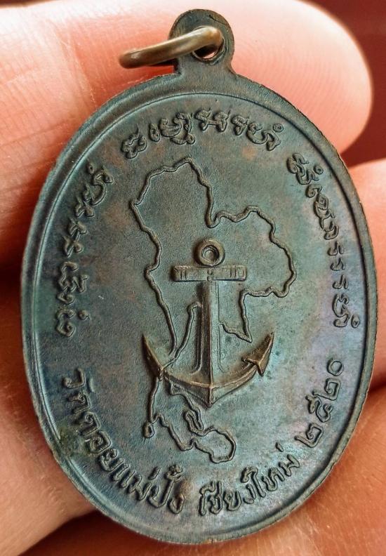 เหรียญรูปไข่ หลังแผนที่ประเทศไทย - สมอเรือ ปี๒๕๒๐ หลวงปู่แหวน วัดวัดดอยแม่ปั๋ง (กองทัพเรือจัดสร้าง)