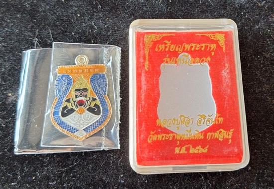เหรียญพระราหูอมจันทร์ รุ่นเหนือดวง เนื้ออัลปาก้าลงยา ตอกเลข+ตอกโค๊ต พร้อมกล่อง |