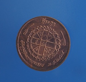 ช่องว่างระหว่างเหรียญลงจารมือด้วย “อิสวาสุ” หมายถึงหัวใจของพระพุทธเจ้าและตอกโค้ต ๙ หมายถึงความเจริญก้าวหน้าตลอดไปสำหรับผู้ใช้เหรียญนี้