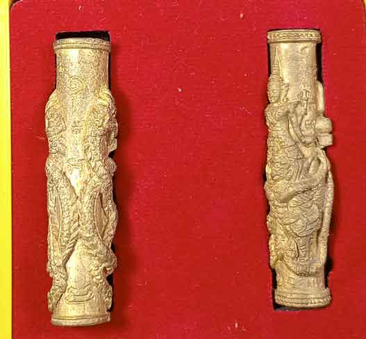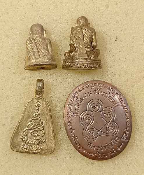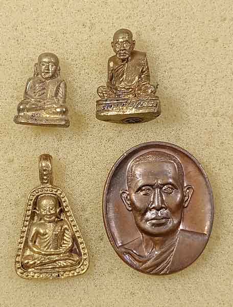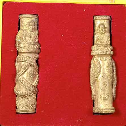 รูปหล่อ + เหรียญจอบ + ชุดตะกรุดคู่ หลวงพ่อเงิน + รูปหล่ออุดกริ่ง หลวงพ่อเขียน วัดชัยมงคล + เหรียญรูปเหมือน หลวงพ่อพิธ รุ่นแรก วัดฆะมัง พิจิตร ปี 45 |