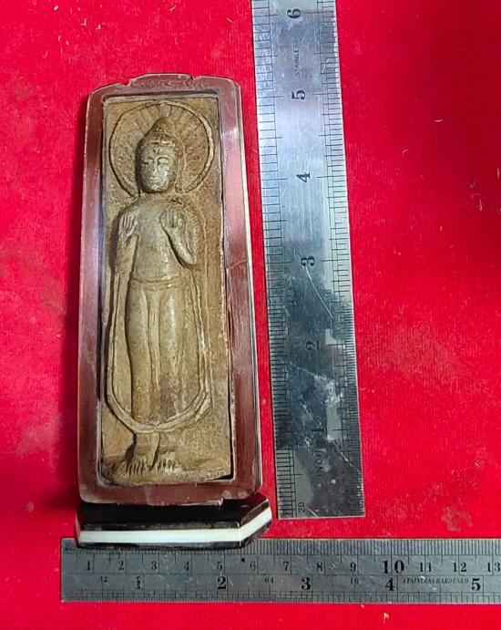 วัดใจ 290.พระเนื้อดินพิมพ์ยืนปางประทานพร ขนาดตั้งบูชา เกจิเก่าๆ ผิวหิ้ง มีอายุพอสมควร . |