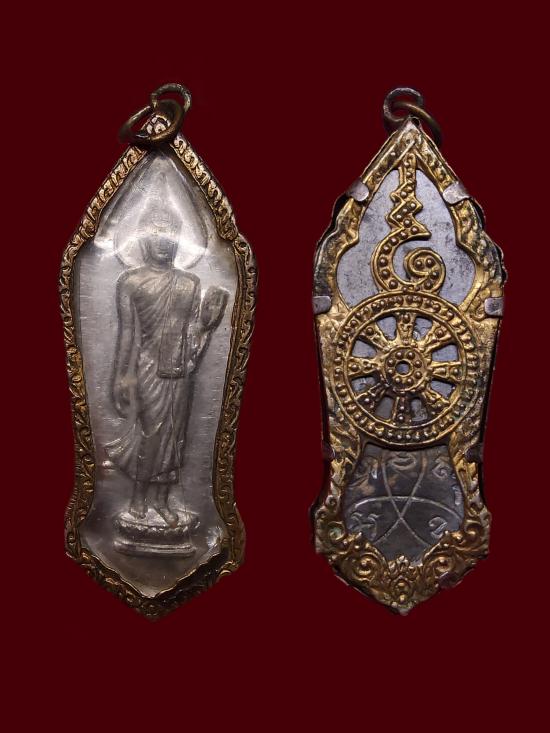 พระ 25 ศตวรรษ บล็อกพระศกจุด เลี่ยมกรอบเดิมธรรมจักร(ขาไม่ครบ) ผิวกระจก |