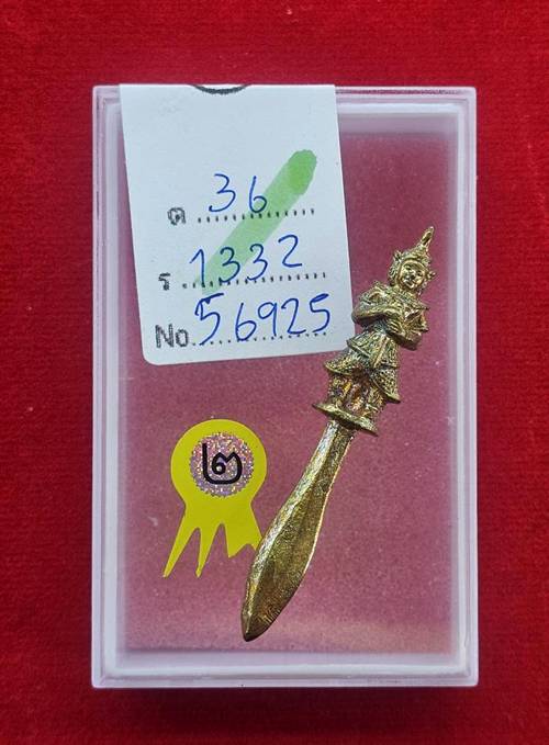 พระขรรค์ท้าวเวสสุวรรณ หลวงพ่อสาคร วัดหนองกรับ รุ่นพระไตรปิฎก เนื้อทองเหลือง ปี2544 ติดรางวัลที่2 งานสมาคมพระเครื่องพระบูชาไทย |