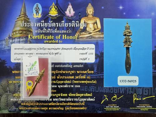 พระขรรค์ท้าวเวสสุวรรณ หลวงพ่อสาคร วัดหนองกรับ รุ่นพระไตรปิฎก เนื้อทองเหลือง ปี2544 ติดรางวัลที่2 |