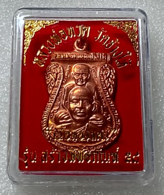 *แดงแปร็ดๆ** เหรียญเสมาพุทธซ้อน รุ่นพิพิธภัณฑ์ ปี 2558 หลวงปู่ทวด วัดช้างให้ จ.ปัตตานี เนื้อทองแดงผิวไฟ-ปี58 +กล่องเดิมใสๆ |