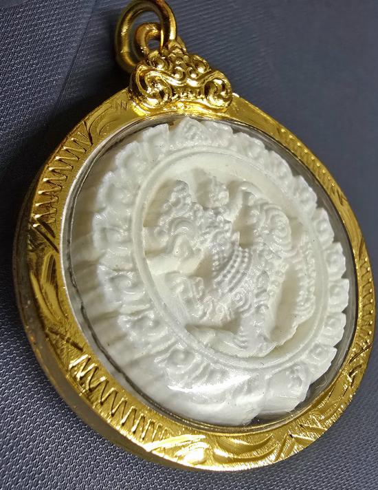 เหรียญเนื้อคชสารแกะสิงห์ เลี่ยมกรอบชุบทอง