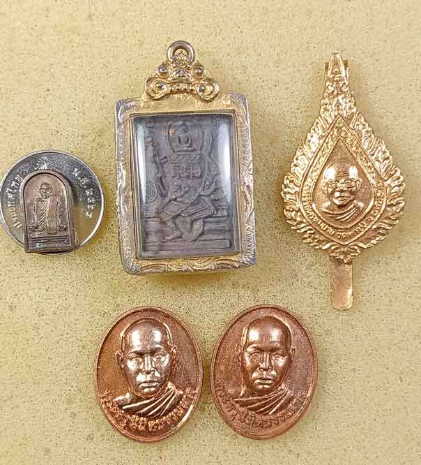 ปรกใบมะขามลพ.แอ๋ว วัดหัวเมืองอุทัยธานี ปี38 +พระเหนือพรหม รุ่นพรหมเศรษฐีบันดาลทรัพย์ เนื้อมหาชนวนโบราณ วัดหนองไผ่อุทัยธานีปี61 +แหนบลพ.ฤาษีลิงดำ+พระครูนิมิตธรรมสารวัดเก้าเสี้ยว นครสวรรค์ 2 เหรียญ |