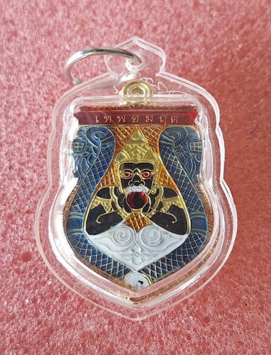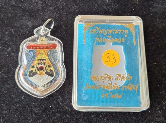 เหรียญพระราหูอมจันทร์ หลวงปู่ศิลา เมตตาอธิษฐานจิต รุ่นเหนือดวง เนื้อทองเหลืองลงยา เลี่ยมกรอบพร้อมใช้ No.33 |