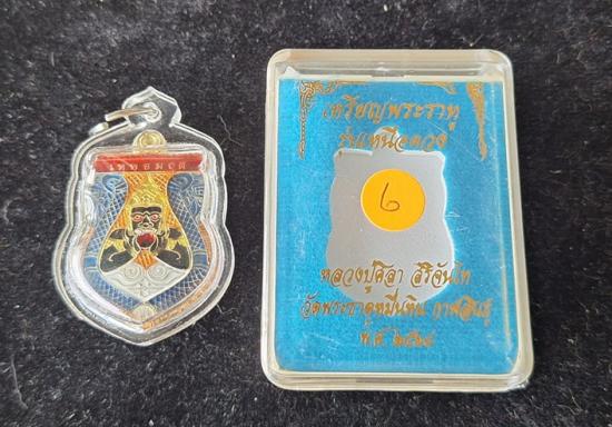 เหรียญพระราหูอมจันทร์ หลวงปู่ศิลา เมตตาอธิษฐานจิต รุ่นเหนือดวง เนื้อทองเหลืองลงยา เลี่ยมกรอบพร้อมใช้ No.6 |