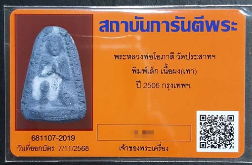 หลวงพ่อโอภาสี วัดประสาทฯ พิมพ์เล็ก เนื้อผง(เทา) ปี2506 กทม. พร้อมบัตรรับรองครับ |