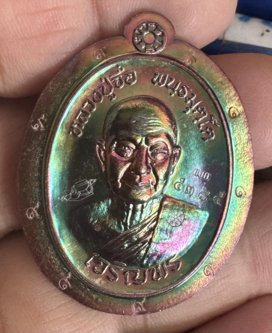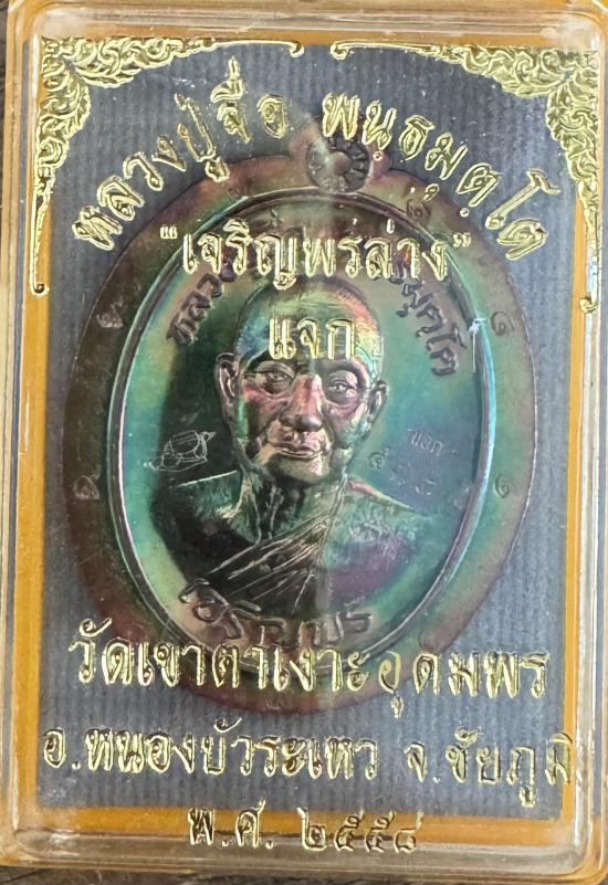เหรียญ หลวงปู่จื่อ พนฺธมุตโต รุ่นเจริญพรล่าง ปี58 เนื้อสัตตะไม่ตัดปีก9รอบ หมายเลข5385 มีกล่องครับ