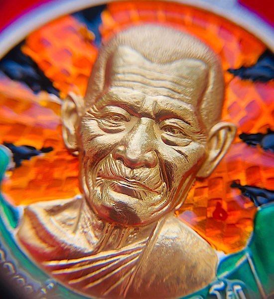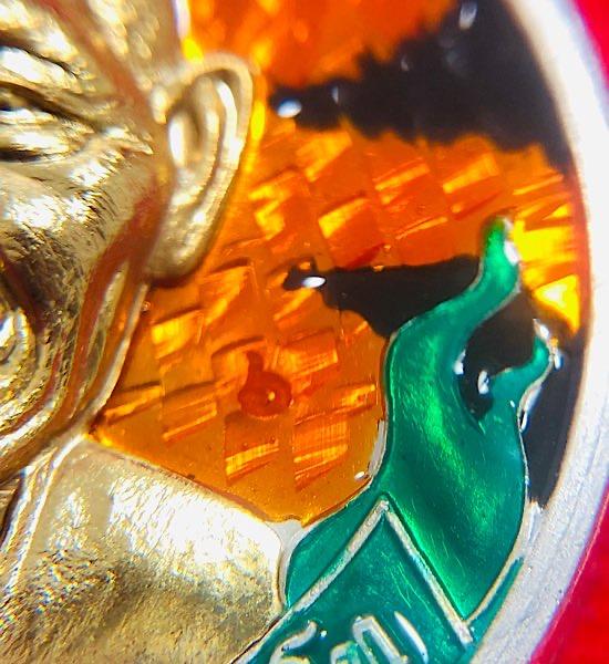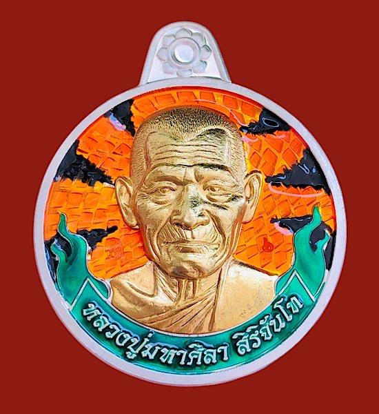 หลวงปู่มหาศิลา อุดมทรัพย์ เนื้อเงินลงยาส้มลายเสือหน้าทองคำ แยกชุดอุปถัมภ์ ลงยาสวยๆ จมูกมีลักยิ้มตรงปลาย เลขสวย 6ไม่มีกล่องเดิม