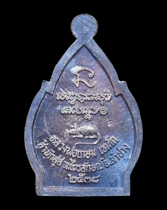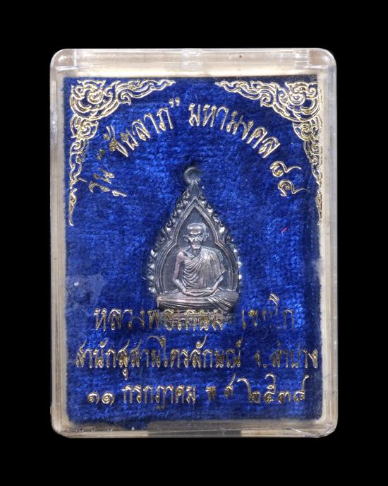 เหรียญชัยลาภหลังหนู เนื้อเงิน หลวงพ่อเกษม สุสานไตร ล ักษณ์ ปี 2538 พร้อมกล่อง แดงเคาะแรก