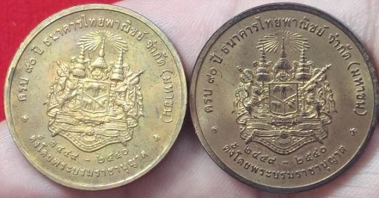 เหรียญร.5 ครบรอบ90ปี ธนาคารไทยพาณิชย์ ปี2540 เป็นเหรียญเนื้อทองแดงผิวไฟ มีมาทั้งหมด3เหรียญ สภาพสวยทุกๆเหรียญ และทุกเหรียญก็ยังบรรจุอยู่ในซองเดิมๆด้วยนะครับ |