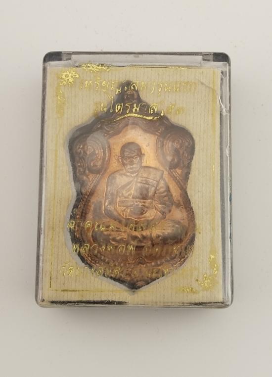 เสมารุ่นแรก เนื้อทองแดง หลวงพ่อฟู วัดบางสมัคร ปี53 เลข 2742 พร้อมกล่องเดิม