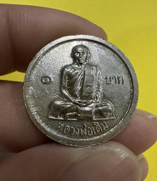 เหรียญขวัญถุง 1 บาท หลวงพ่อเงิน หลังหลวงพ่อเดิม พิธีเดียวกันกับรุ่นช้างคู่ วัดท้ายน้ำ ปี 2526