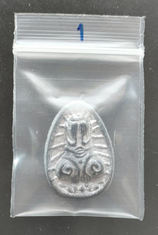 พระปิดตา เจ้าคุณผล วัดหนัง กรุงเทพ พิมพ์รัศมี(หายาก) เนื้อชินตะกั่วผสมชนวนเก่า ปี2507 ด้านหลังมีจารยันต์ พระดีปีลึก สภาพสวย หายาก องค์ที่1 |