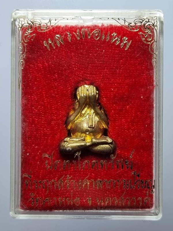 พระปิดตาโภคทรัพย์ "หลวงพ่อแนม วัดเขาหน่อ" จ. นครสวรรค์ รุ่นสร้างศาลาการเปรียญ ปี 2539 เนื้อทองผสม กล่องเดิม |