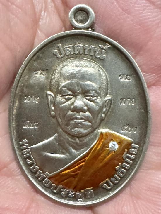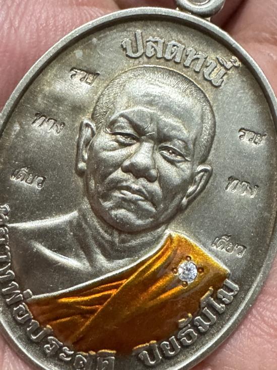 เหรียญหลวงพ่อประสูติ วัดในเตา (วัดถ้ำพระพุโกษีย์ ตรัง เนื้ออัลปาก้าซาตินตอกรวมโค๊ตฝังพลอยสังฆฏิลงยาจีวร |