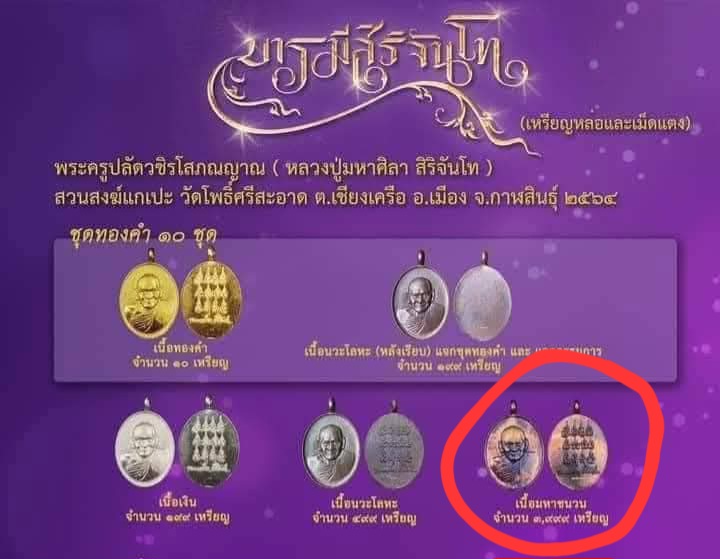 วัดใจ ยุคต้น 2564 หลวงปู่มหาศิลา (หลวงปู่ศิลา) เหรียญประสบการณ์บารมีสิริจันโท หล่อมหาชนวน น้ำทองกล่องเดิม สร้างน้อย 3,999 องค์ จมูกสวยๆผิวๆน้ำทอง