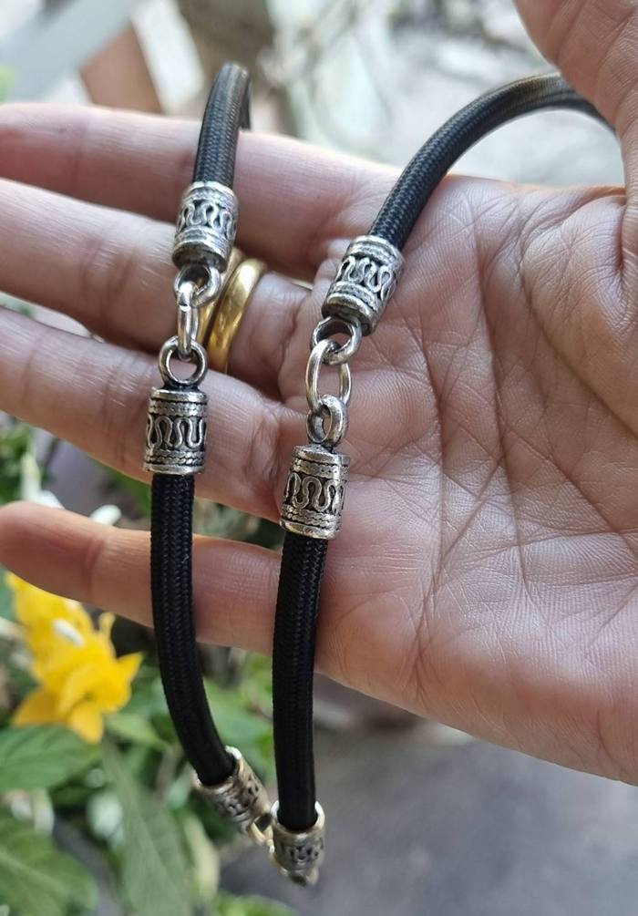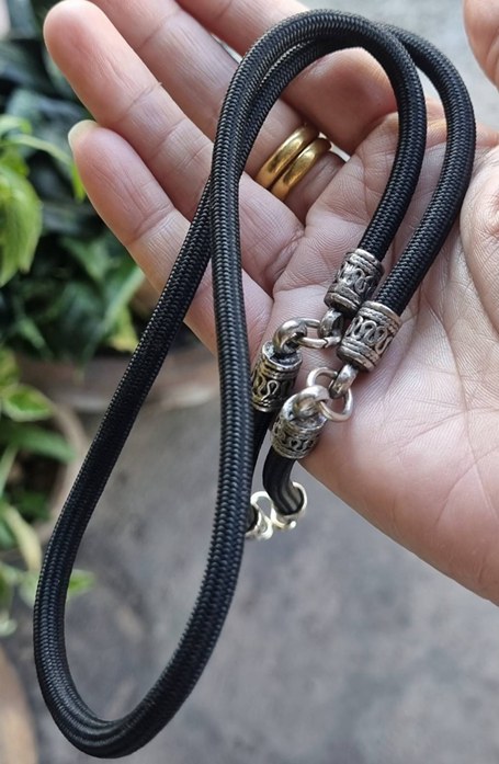 สร้อยคอคล้องพระเชืีอกร่มตอกหมุดหนาแน่น คล้องพระได้ 3 องค์ ขนาดเชือกร่มอย่างหนา 6-7 มิล ตะขอแข็งแรงทนทาน ( ของใหม่ ) |