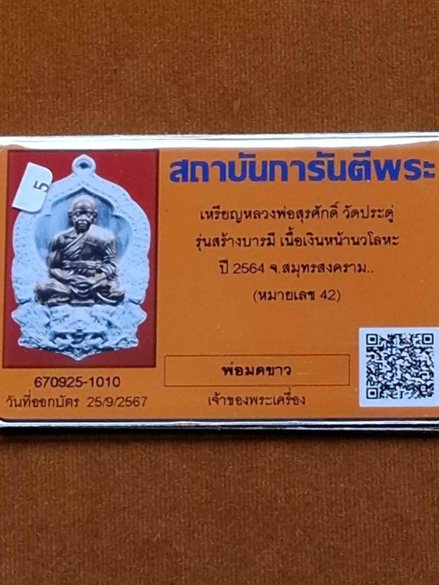 เหรียญนั่งพาน รุ่นสร้างบารมี พระมหาสุรศักดิ์ วัดประดู่พระอารามหลวง เนื้อเงินสอดเนื้อนวะโลหะ no.๔๒ กล่องเดิม พร้อมบัตรรับรองครับ |