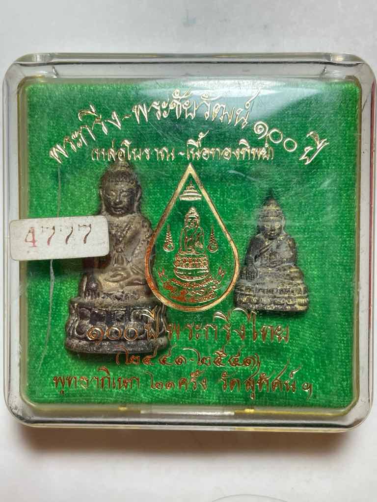 850.- พระกริ่ง-พระชัยวัฒน์ 100ปี พระกริ่งไทย ปี41 (เสก21ครั้ง) เนื้อทองทิพย์ หล่อโบราณ เข้าดินไทย บรรจุเม็ดกริ่งในตัว วัดสุทัศน์ หายาก เลขสวย no.4777 กริ่งดังดี มีจารมือ เดิมๆคากล่อง